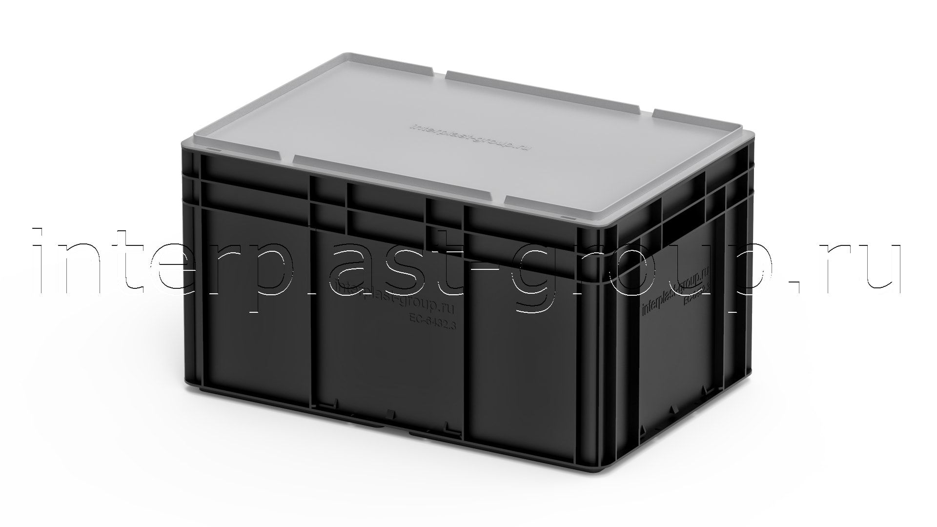 Евроконтейнер открытые ручки/усиленное дно (черный), 600x400x320 мм