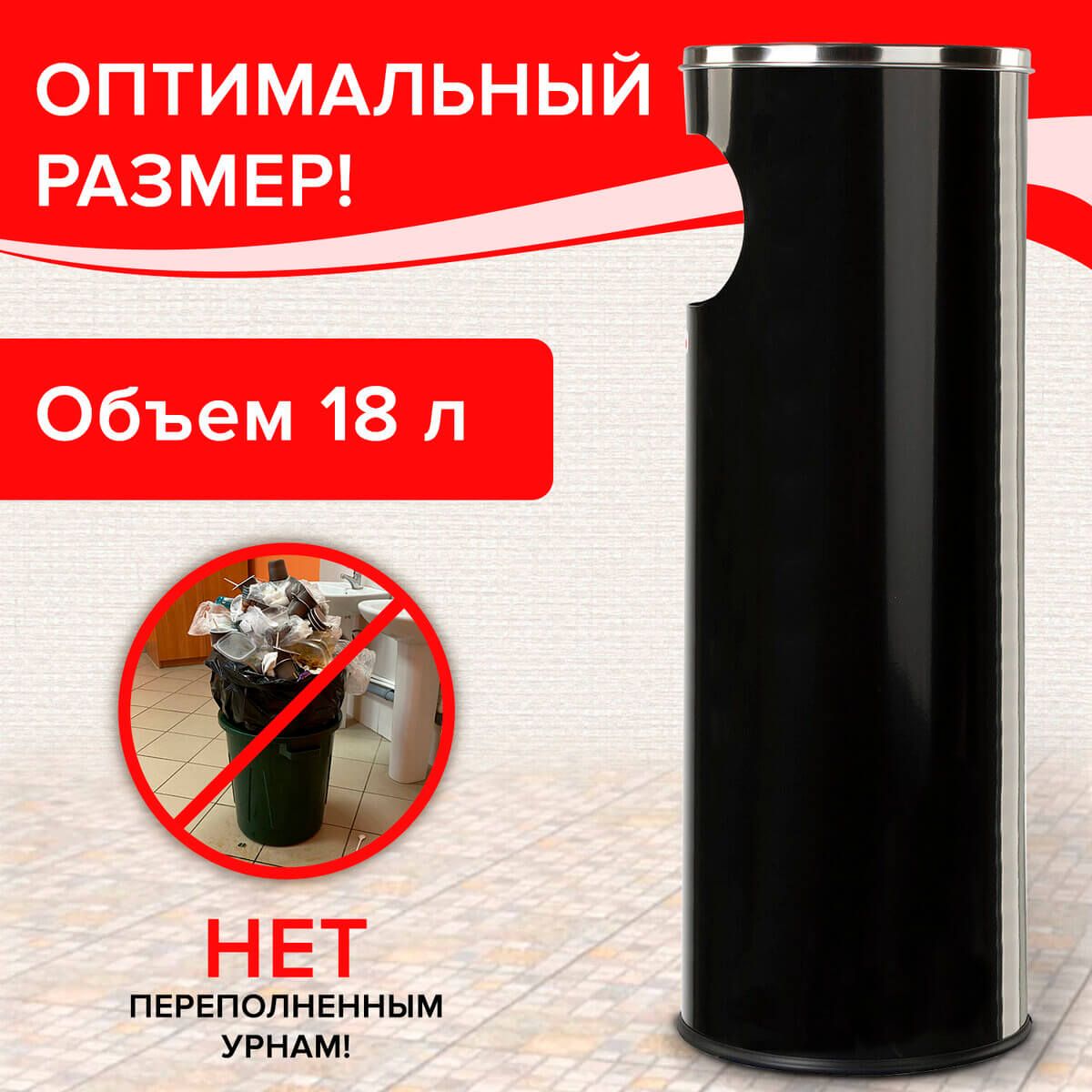 Урна с пепельницей 18 литров, нержавеющая сталь, черная, LAIMA PROFESSIONAL в Феодосии